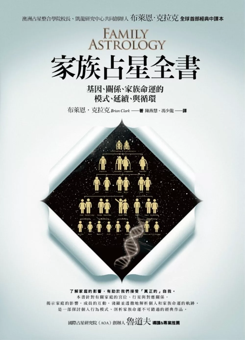 另一種時間推演,家族內的演變與迴旋 當我的恩師梅蘭尼瑞哈特(Melanie Reinhart)老師將澳洲的占星權威布萊恩克拉克(Brian Clark)老師的名字介紹給我時,我還不知道我已經讀過他的經典,因為曾經有那麼一陣子我與許多台灣的身心靈工作者一樣著迷著海寧格(Bert Hellinger)的星座排列,並認為星盤可以顯示出許多相關的資訊,卻不知從何著手。而在網路上搜尋相關的家族占星書籍時,克拉克老師是當時唯一討論占星與家族關係的書,並且與梅蘭尼的凱龍星,一同被搜羅在企鵝出版社,由已故占星大師薩司波塔斯(Howard Sasportas)主編的祕典叢書當中。