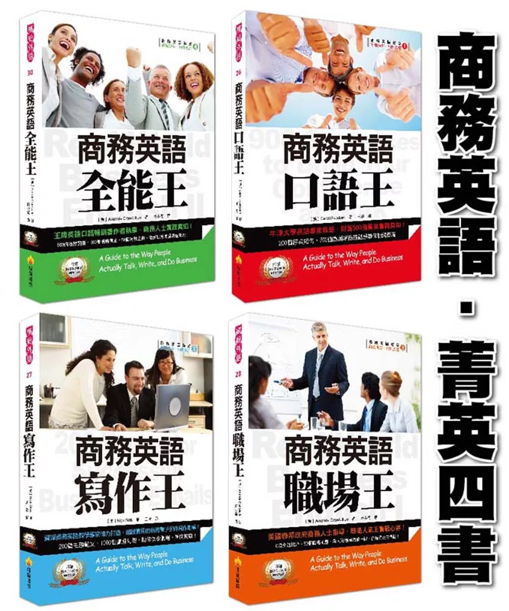 就讓瑞蘭國際出版《商務英語四書:商務英語口語王、商務英語寫作王、商務英語職場王、商務英語全能王》,一次滿足你商務英語所有的需要!