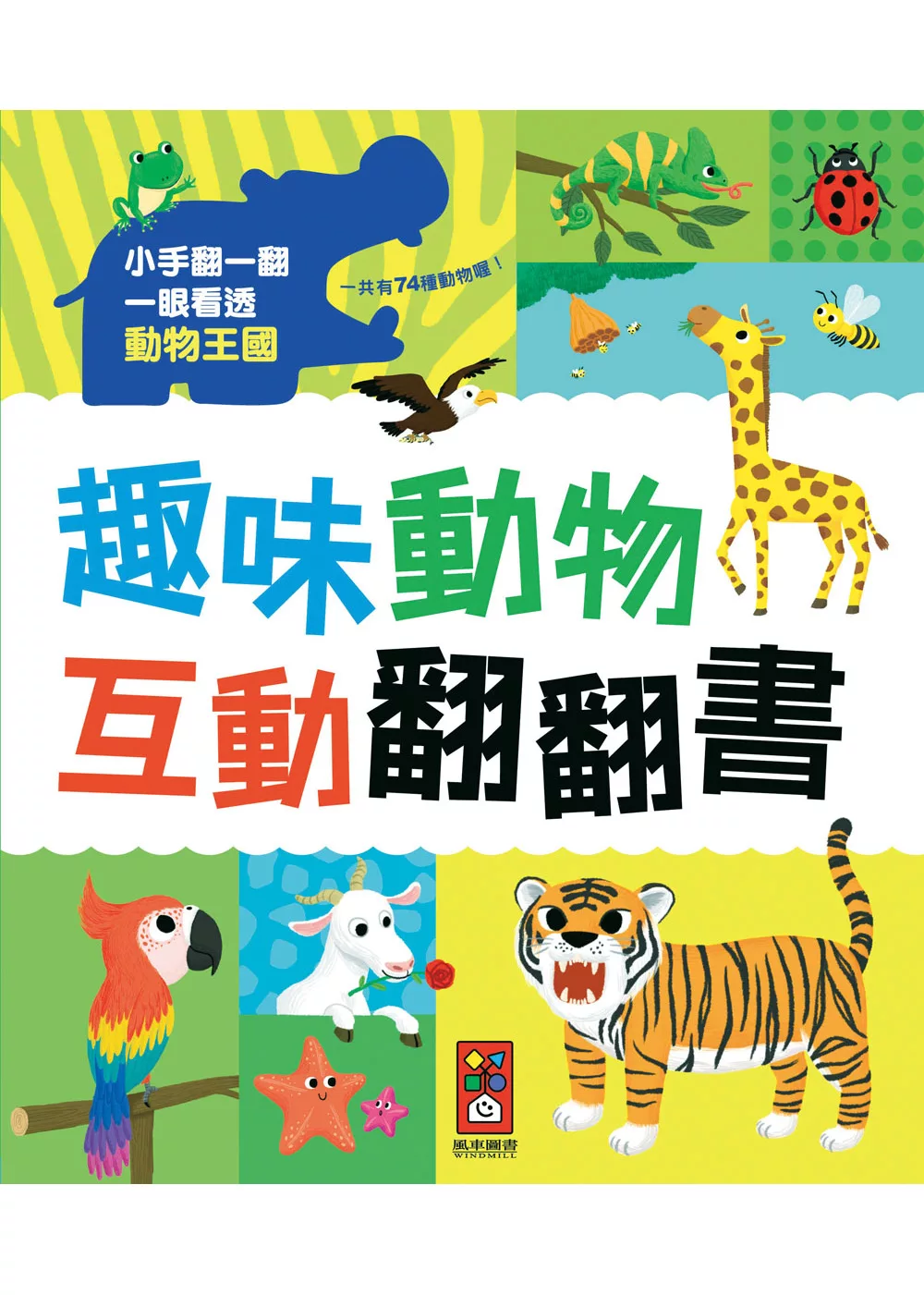 色彩豐富、形象生動的翻翻書,寶寶的第一本動物圖鑑,讓寶寶圖文對照,認識74種有趣又可愛的動物朋友。