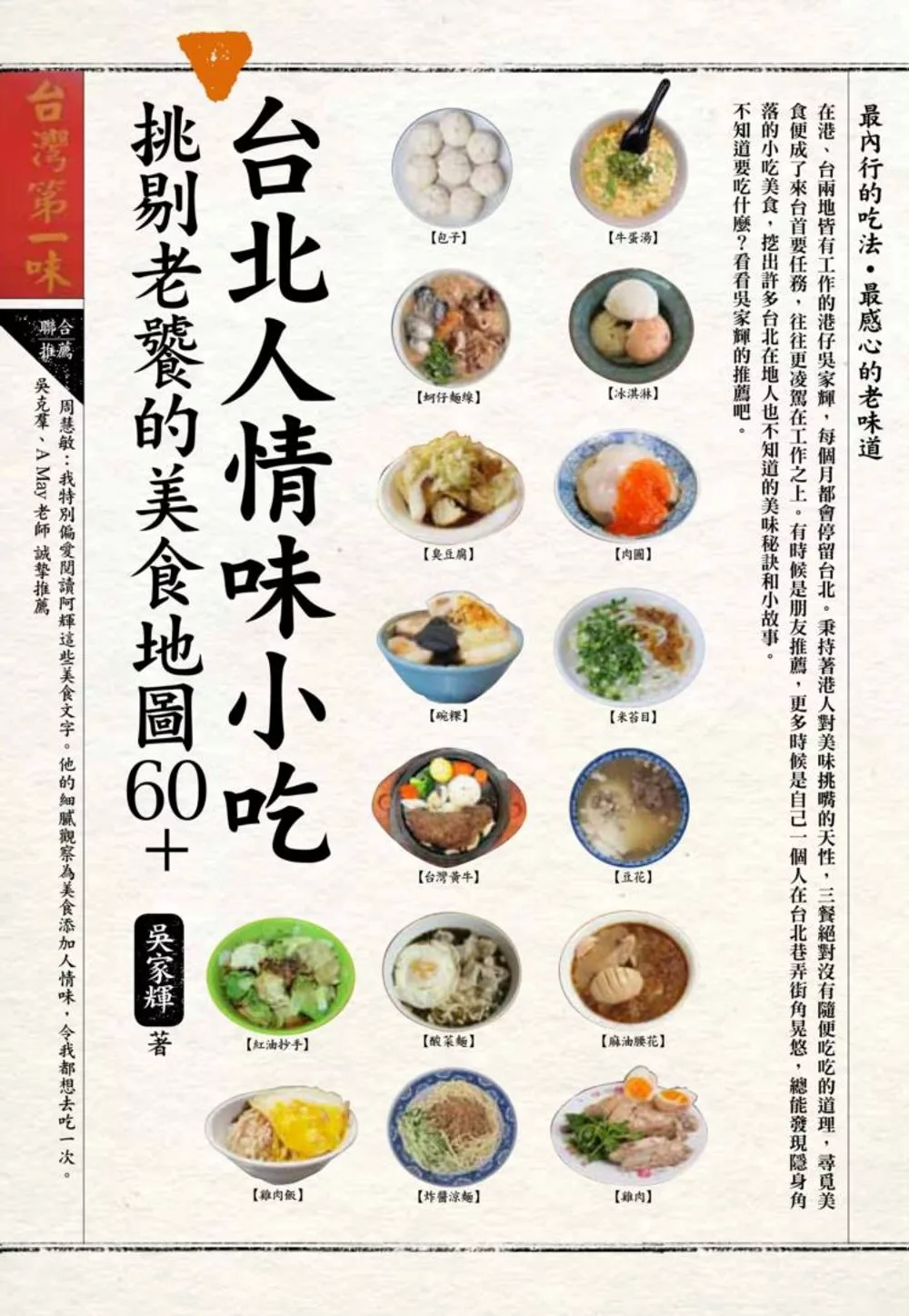 這60家小吃小攤的文字中,不僅分享了美食體驗,說了一些店家的小故事,寫下一點香港人的生活習慣和對吃的要求,還是港仔來台十年的美食全紀錄。