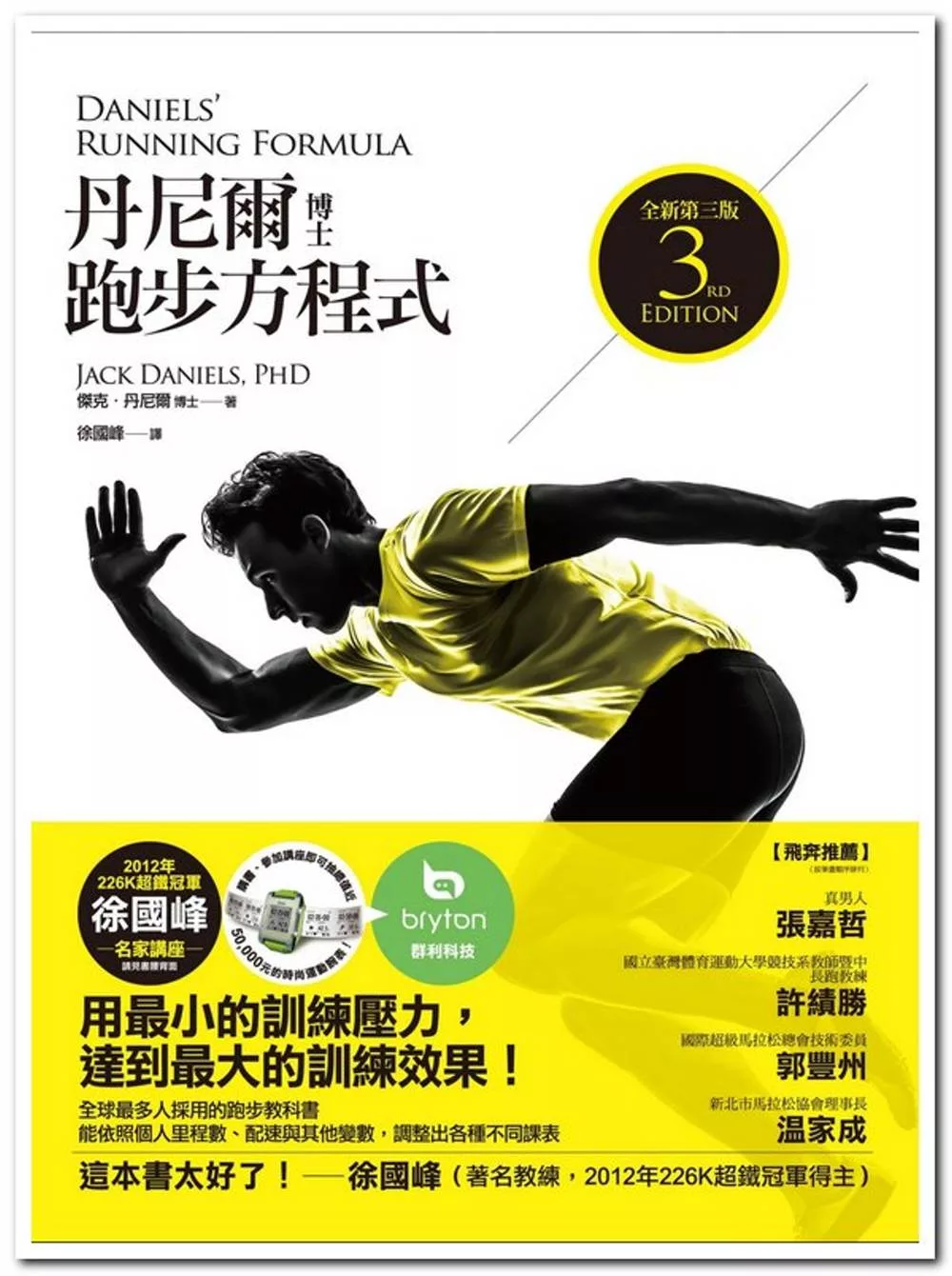 本書中文版採用2014年全新改版的《丹尼爾博士跑步方程式》第3版。作者將他不斷學到的更多關於跑步以及跑者的知識,以及更新、更實用、更簡單的跑步方式,全部融入了書內。讓跑者及教練可以用來設計訓練課表和比賽課表。