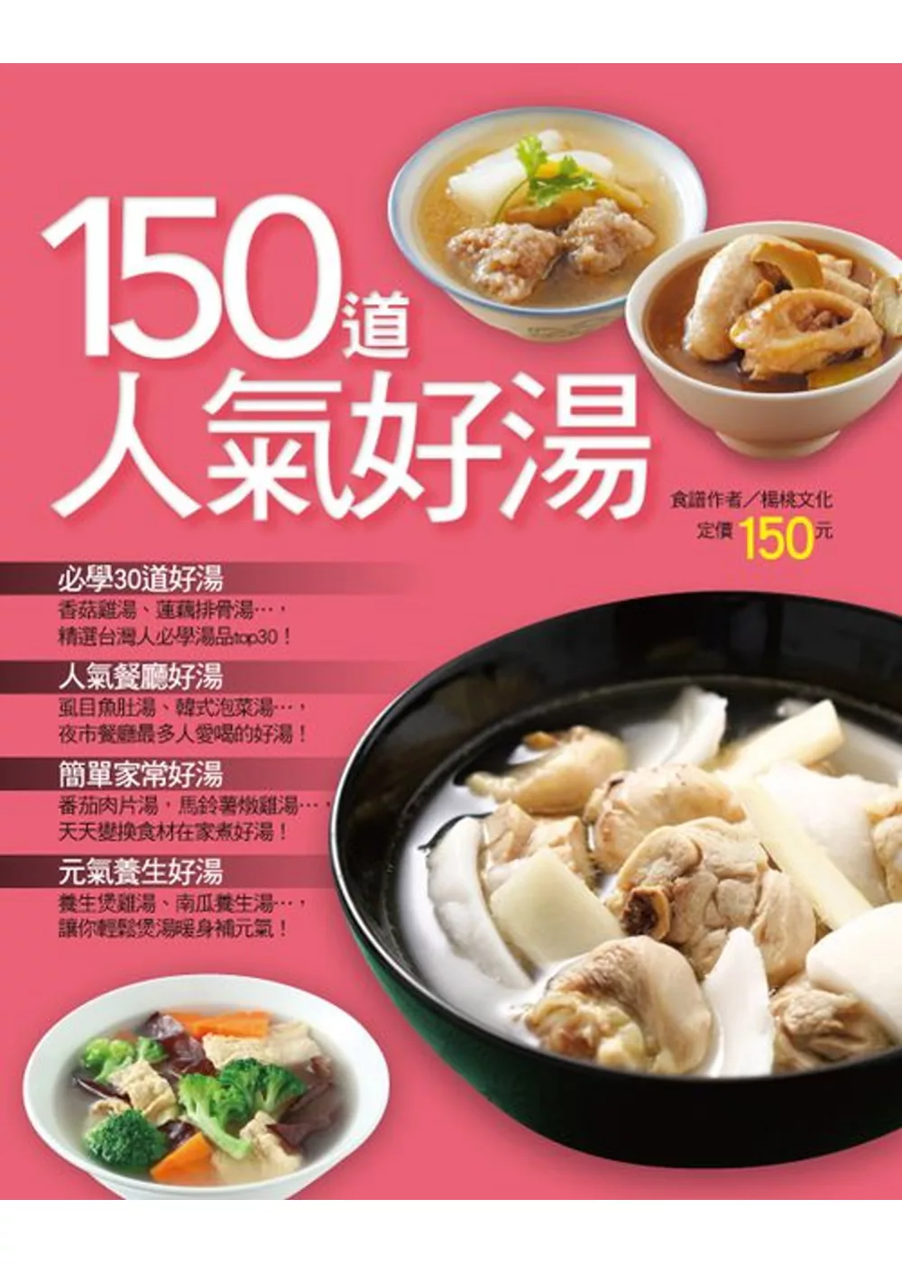 本書收錄150道各式好湯配方,除了簡單上手又方便烹煮的家常湯和冬令必備燉補煲湯之外,還特別為讀者精選台灣人必喝必學的30道經典湯品,更有最受歡迎的夜市、餐廳湯品作法大公開,讓你不必再煩惱該煮什麼湯,即使工作繁忙,回到家仍能天天變換食材,輕鬆煮好湯!